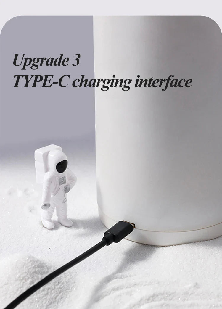 Oppladbar funksjonalitet: Glem vanlige batterier! Denne astronautspisseren er utstyrt med et innebygget batteri, noe som eliminerer behovet for kontinuerlige batteribytter. Bare koble til den medfølgende USB-kabelen og sett dine kreative ideer i gang.