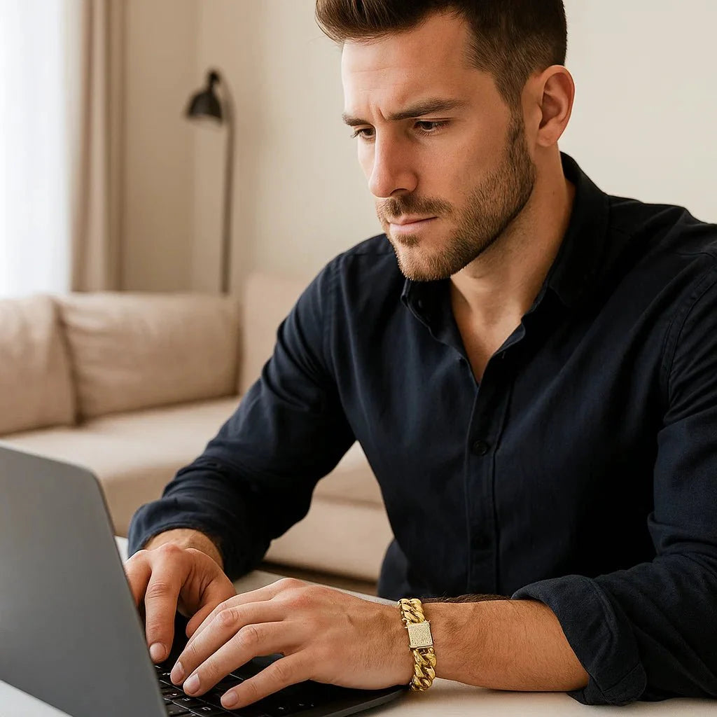 Oppdag det perfekte tilbehøret med vårt menns Cuban Link-armbånd, designet for de som verdsetter sofistikering og kvalitet. Dette armbåndet kombinerer et klassisk design med moderne håndverk, og tilbyr en luksuriøs følelse og en komfortabel passform, noe som gjør det til et essensielt uttrykk for stil og selvtillit i enhver manns samling.