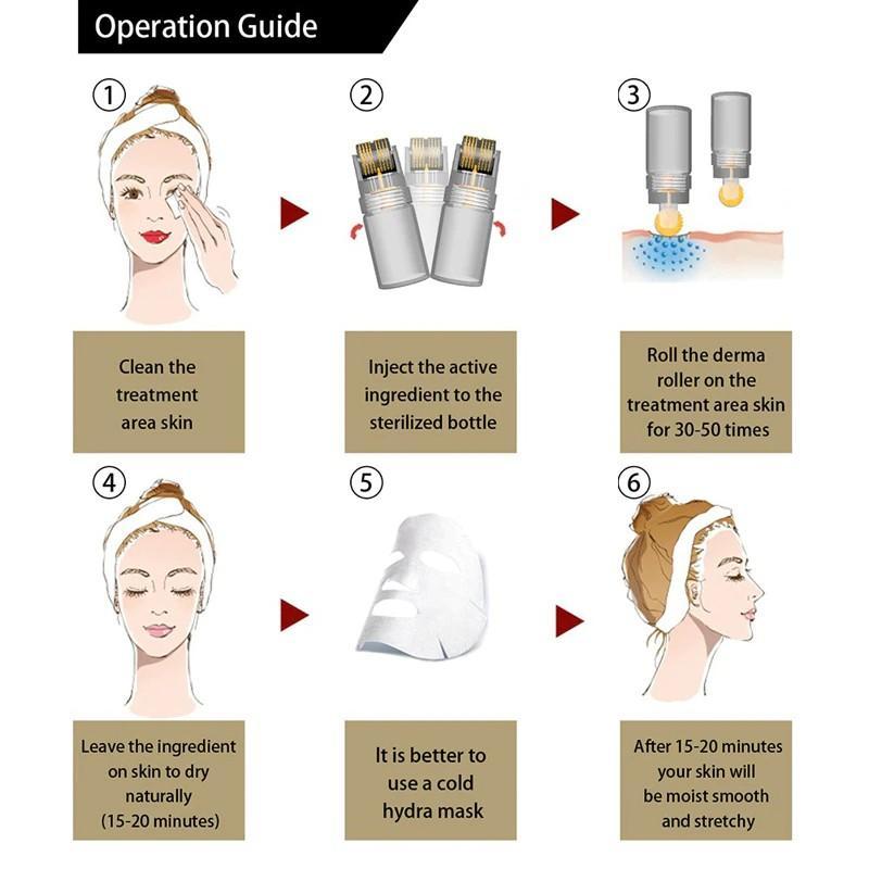 Dette produktet vil reparere huden din, ved å bruke derma-rolleren som rulles over huden for å øke blodstrømmen til de ytre lagene. Hvordan fungerer det? Rulleren er utstyrt med 192 mikronåler som skånsomt glir over hudens overflate, noe som stimulerer blodtilførselen til ansiktet ditt, setter i gang en helingsprosess og gir deg en revitalisert hud.