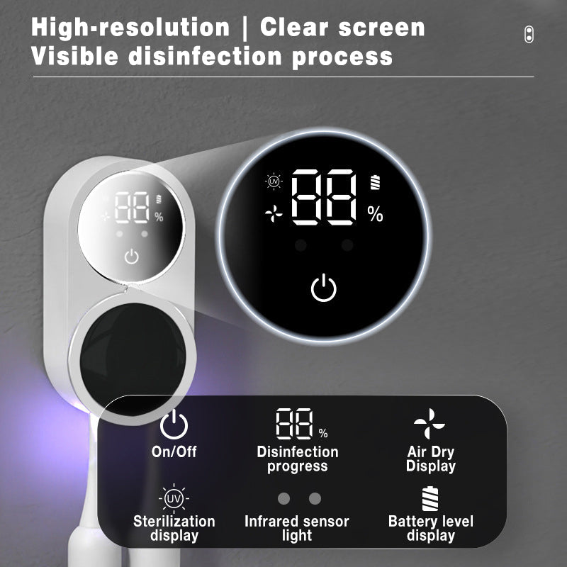 Høy-Effektiv UV Sterilisering: Ved å bruke kraftig UV-desinfeksjon kan den effektivt eliminere de fleste bakterier og virus på tannbørsten, og gi en grundig hygienisk rengjøringsopplevelse.