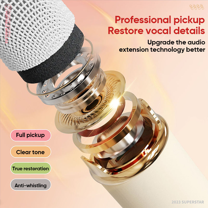 - Enkel mikrofon stereolydeffekt: Denne karaokemaskinen for barn er utstyrt med en trådløs mikrofon av høy kvalitet, slik at barna kan nyte en unik sangopplevelse. Med unike lydinnstillinger (original, KTV-modus, kvinnestemme, mannsstemme, barns, magiske lydeffekter), hjelper den barna å vise frem sangtalentene sine bedre. Med enkel betjening kan du enkelt bytte mellom original stemme og akkompagnementmodus.