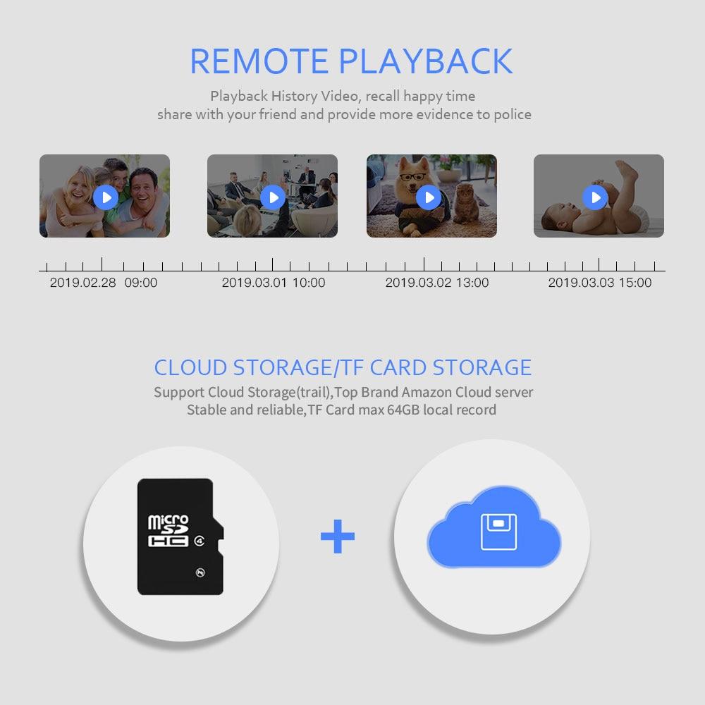 Baby Pust Monitor-enheten kommer med et sky-ID-nummer og støtte for mobil deteksjonsalarm: mobil alarmvarsling. Du kan konsentrere deg om å administrere og overvåke en rekke enheter, inkludert flermonitorovervåking og videovisning, med mulighet for opptil 4 skjermbilder. Støtte for TF-minnekortvideo, maksimal støttekapasitet: 64G.