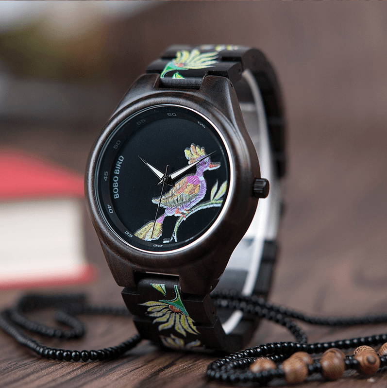 Norvo | Bambus Treklokke for Kvinner Med Brodert Urskive