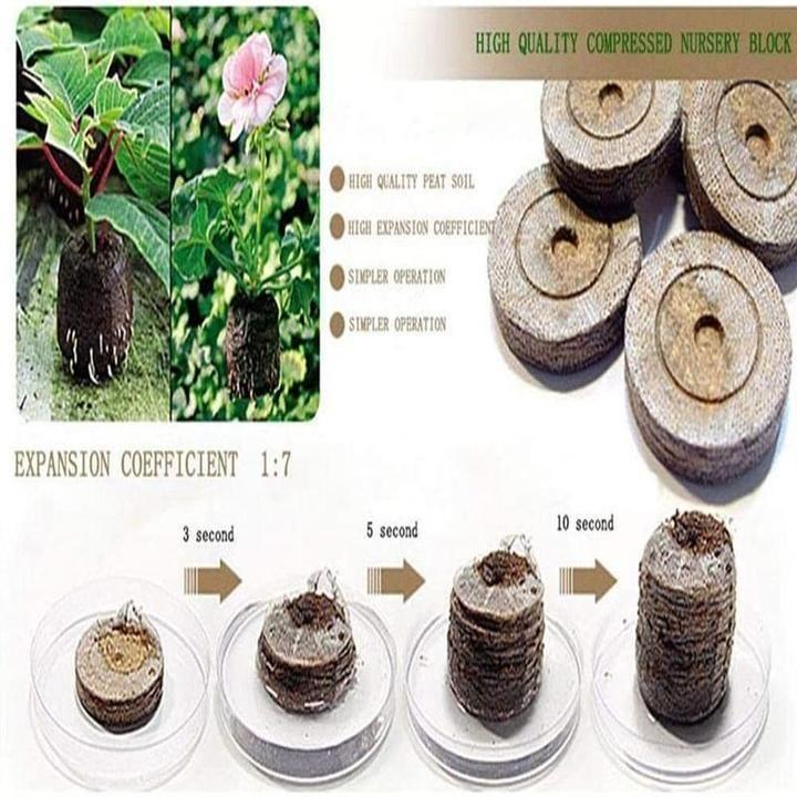 Frøplanteblokkene er som komprimerte håndklær, og kan raskt utvide seg når de utsettes for vann uten å vente lenge. Planteskoleblokker er det foretrukne frøspiringsgrunnlaget for hagearbeidsprofesjonelle. -