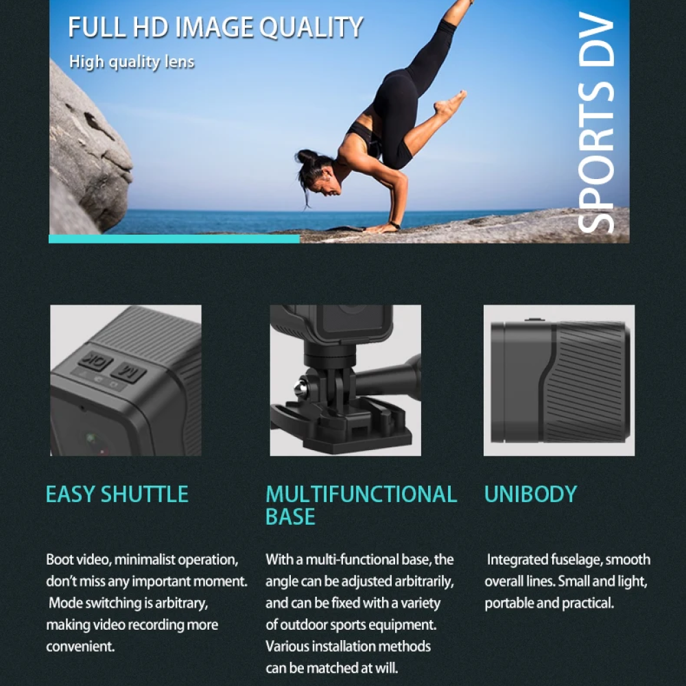 - Allsidig Bruk: Med en multifunksjonell base kan dette kameraet lett festes til ulike utendørs sportsutstyr, noe som gjør det perfekt for motorsykler, sykler og mer.
