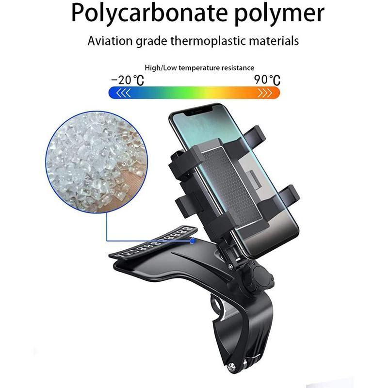 🚗Denne telefonholderen har en sterk, skridsikker klemme for å sikre en trygg festing av enheten din på dashboardet, solskjerm eller til og med frontruten📱