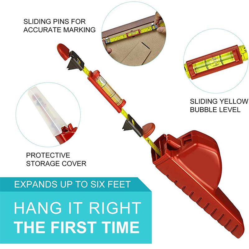 ØKONOMISK ALTERNATIV. Du trenger ikke å kjøpe et stort målebånd eller en dyr laseravstandsmåler igjen. Dette verktøyet er gjenbrukbart, lett og praktisk, som lar deg plassere enhver gjenstand på veggen nøyaktig og vellykket ved første forsøk.