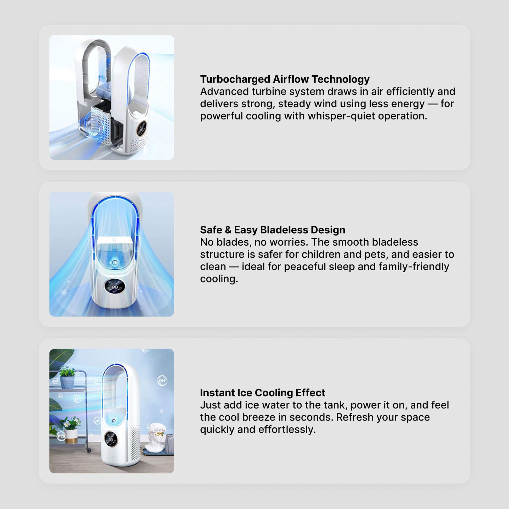 Norvo | Bladeless Portable Air Conditioner | Ultra-Stille, Ergonomisk Design & Ideell for Hjem- og Kontorbruk