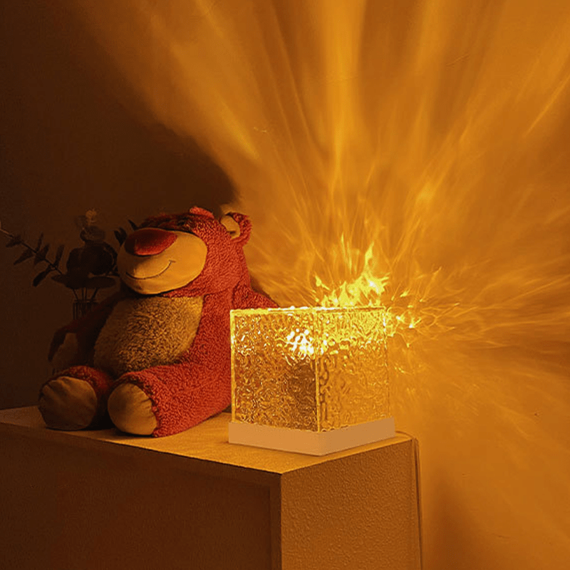 🔥16 FARGE KRYSTALLVANNLAMPE: Bølgelampen prosjekterer et 3D visuelt flamme/stjerner lysdynamisk mønster på veggen. Kombinasjonen av elegant utseende og strålende lys uttrykker den unike konnotasjonen og den kunstneriske temperamenten til en lampe, og skaper en fantastisk visuell fest av lys og skygge.