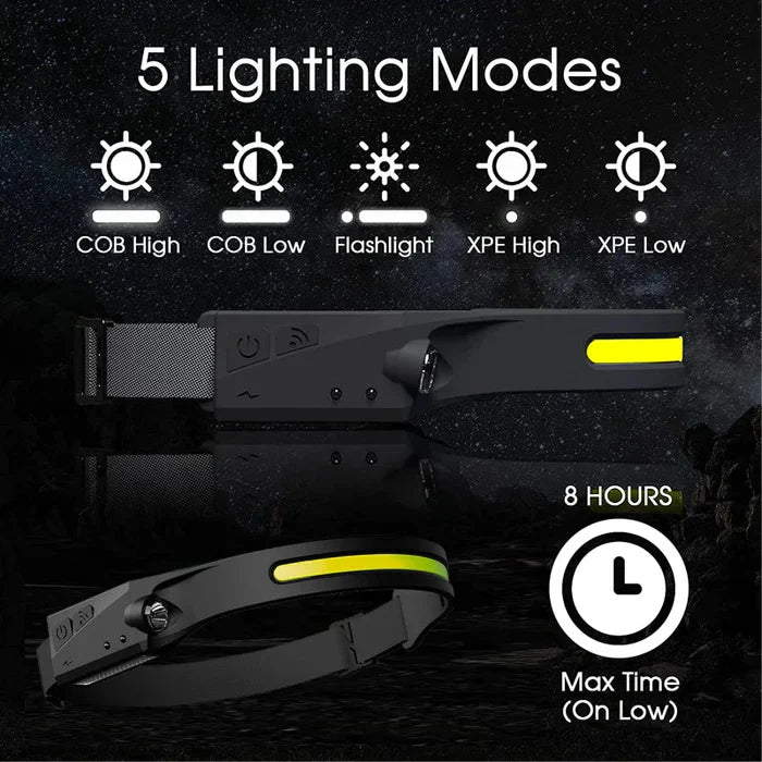 【Ekstremt lyssterk og 230° lysvinkel】Med en lysvinkel på 230°, gir vår LED-hodelykt en betydelig bedre belysning av omgivelsene enn tradisjonelle hodelykter.