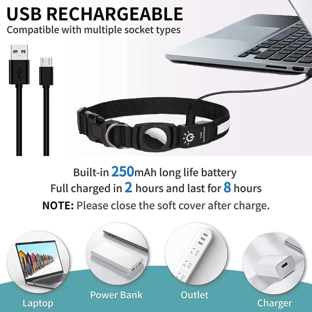 Keep your four-legged friend safe and stylish with the LED Quick Release Dog Collar with AirTag Holder . Ideal for early morning or evening walks, this unique collar combines visibility, safety, and Apple AirTag compatibility.