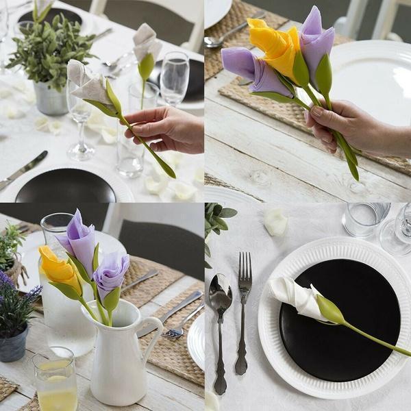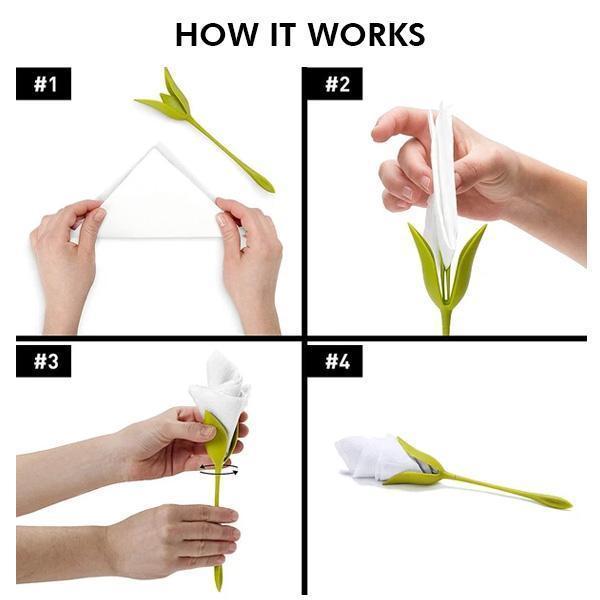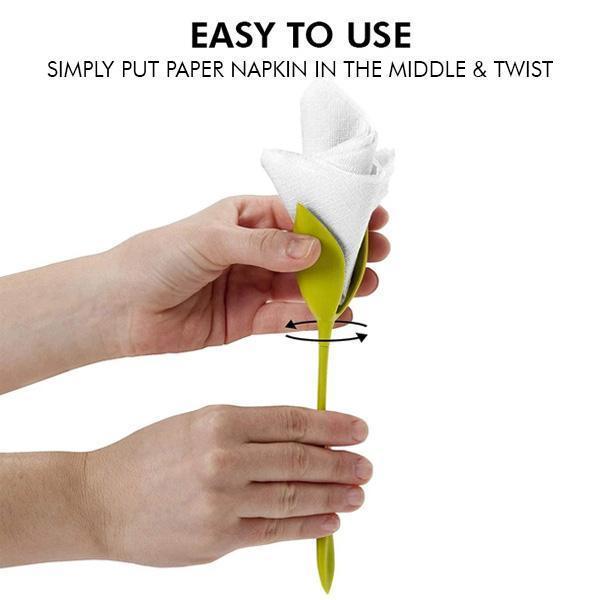 - Fungerer raskt. Du vil ikke bruke timer på å brette og vri servietter. Dette tar bokstavelig talt bare noen sekunder, og så er du klar.