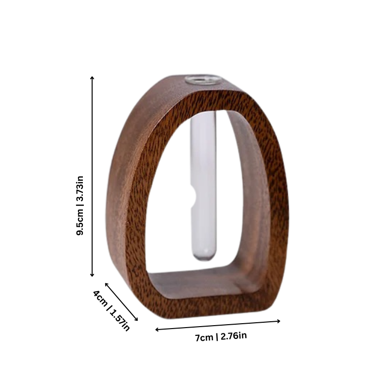 BloomLoop bringing varme og eleganse til rommet ditt med en moderne tre ramme og glassrørdesign som vakkert viser frem dine favorittplanter samtidig som det forvandler selv den minste overflaten til et friskt og iøynefallende blikkfang.