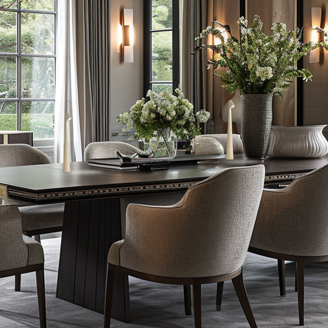 Få et snev av eleganse og funksjonalitet i ethvert rom med denne stilrene bordlampen. Med sitt slanke, trådløse design og et holdbart oppladbart batteri, gir denne LED-lampen opptil 20 timer med belysning der du måtte trenge det. Laget av førsteklasses metall og glass, er den ideell for både innendørs og utendørs bruk. Med sitt dimmbare LED-lys og sofistikerte form, hever denne lampen interiøret ditt mens den forblir praktisk og lettvint.