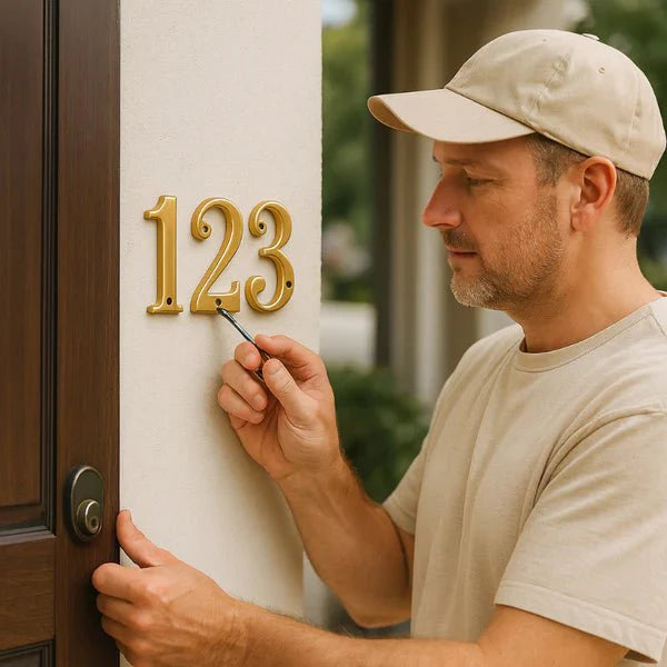 Tilfør hjemmet ditt en særegen sjarm med våre BrassGrip husnummer, som er nøye laget av 100% solid messing. Disse tallene skiller seg ut med sitt overlegne håndverk og tidløse design, noe som gjør dem til det perfekte valget for dører, terrasser eller porter.