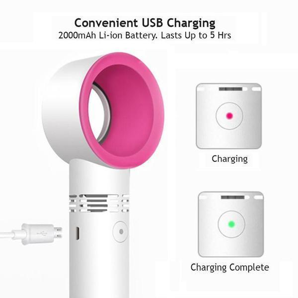 - Trådløs. Du vil unngå ledninger som henger fast i armene og håret ditt. Den kan lades via USB. Bare plugg den inn, lad den opp, og kjøl deg ned.