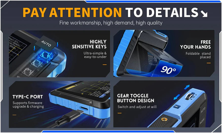Hver modell kommer med en innbygd signalgenerator, kan trygt måle spenning opptil ±400 V, og drives av et oppladbart batteri som sikrer opptil 4 timers kontinuerlig drift.