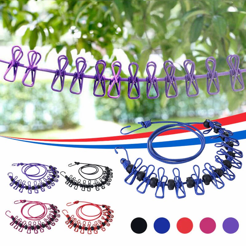 ❤☞ Multifunksjonell klips bærbar reise tørkerack med stålhekter på begge sider, kan festes hvor som helst: hotell, bad, vaskerom, bobil, båt, balkong eller til og med i trær.