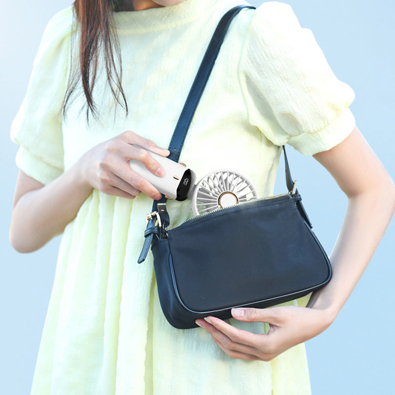 - Håndholdt vifte som gir deg en forfriskende luftstrøm.