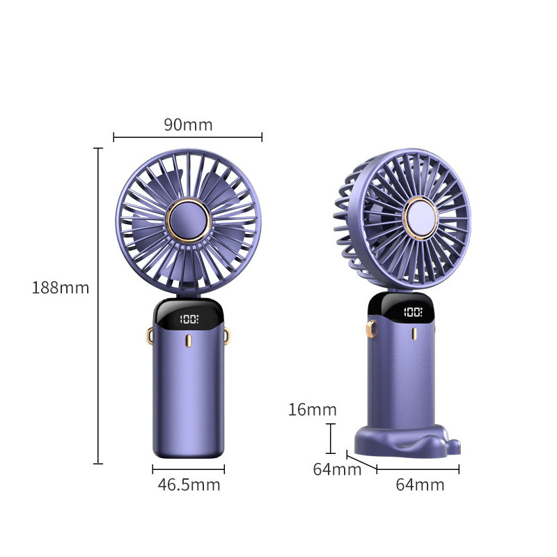 Personlig Vifte med Iskjølingsfunksjon -- Bare trykk på knappen for å starte kjølemodus, som får halvlederkjøleplaten til å nå 10 °C og danner små vanndråper på overflaten. Denne funksjonen lar deg friske opp ansiktet, håndleddene eller nakken for umiddelbar lettelse, gi fuktighet til huden din, og nyte en uventet kjølig sommer. I tillegg fungerer den perfekt som en ansiktsvifte for å holde sminken på plass.