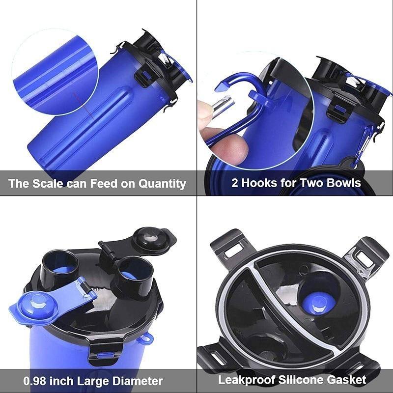 Å gå en tur i parken med hunden din er moro, men hva hvis de er tørste og sultne? Du vet de ikke kan drikke fra vannflasken din, og å ta med en bolle er ganske uhensiktsmessig. Vi tilbyr deg 2-i-1 Bærbar Kattedyrsmater! Det er en praktisk vannflaske og en matbeholder. Før du går tur med kjæledyret ditt, fyll den med vann og den andre halvdelen med mat eller kjøtt. Så hver gang de er tørste og sultne, åpner du bare 2-i-1 Bærbar Kattedyrsmater og heller vannet eller maten i den sammenleggbare bollen som følger med pakken. Og se hunden din bli mett og samtidig bli fylt opp med hjelp av 2-i-1 Bærbar Kattedyrsmater!