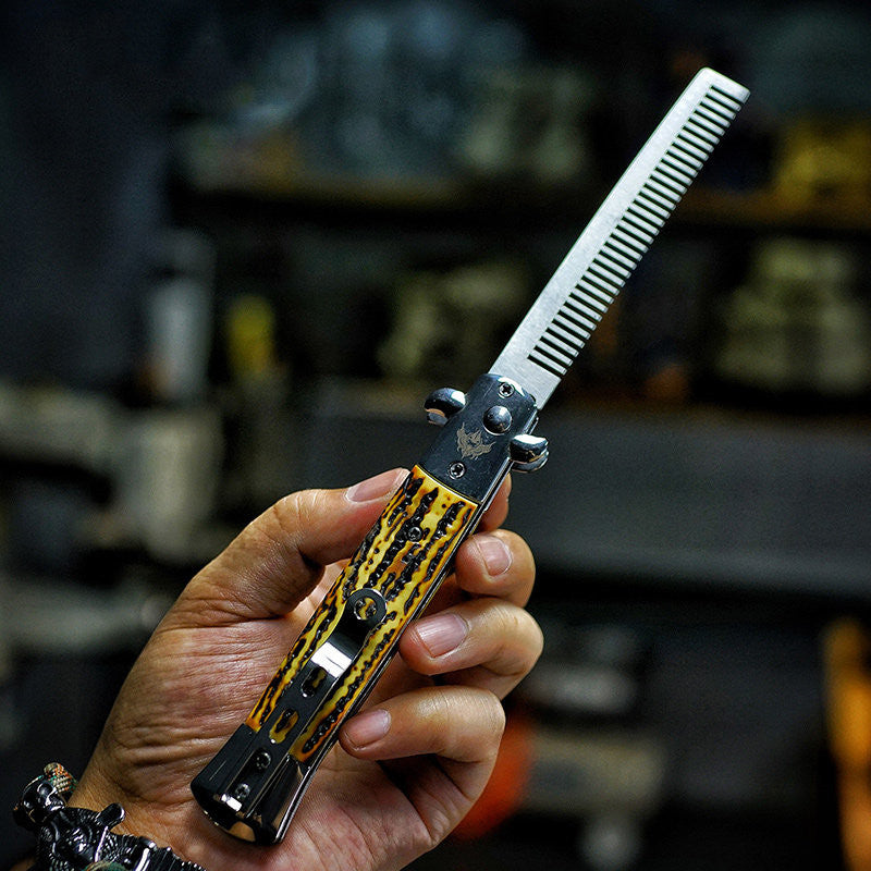 Denne kammen er laget av metall og er både antistatisk og ekstremt slitesterk. Den fungerer også som en flaskeåpner og en skrutrekker.
