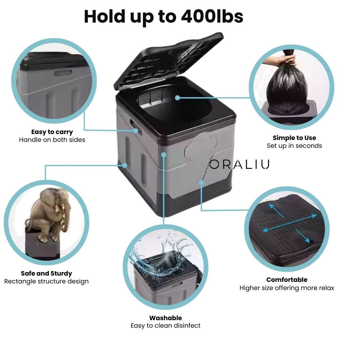 - Flerfunksjonelt Design – Fungerer som et bærbart toalett, komfortabel sete, praktisk søppelbøtte, eller oppbevaringsboks, noe som gjør det uunnværlig for enhver utendørs entusiast.