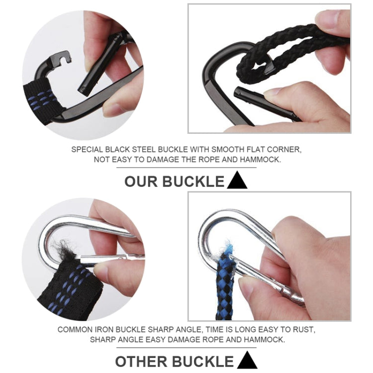 6. Selvutbredende hengekøye: Denne spesielle hengekøyen åpner seg automatisk og kombinerer myggnettet og hengekøyen i ett integrert design; dermed er det ikke behov for å knyte tau til myggnettet lenger. Myggnettet kan snus slik at stoffet vender oppover når nettet ikke er i bruk. Myggnettene kan så festes sikkert til den øverste delen av hengekøyen.