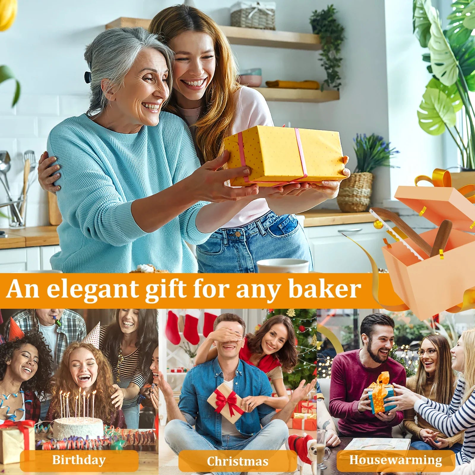 Miljøvennlig bamboo-griff: I tillegg til sitt praktiske design, gir bamboo-griffen et miljøbevisst alternativ for kjøkkenredskapene dine. Den er polert for en glatt overflate, behagelig å holde og enkel å bruke, noe som gjør den til et pålitelig valg for ditt daglige bake- og matlagingsbehov.