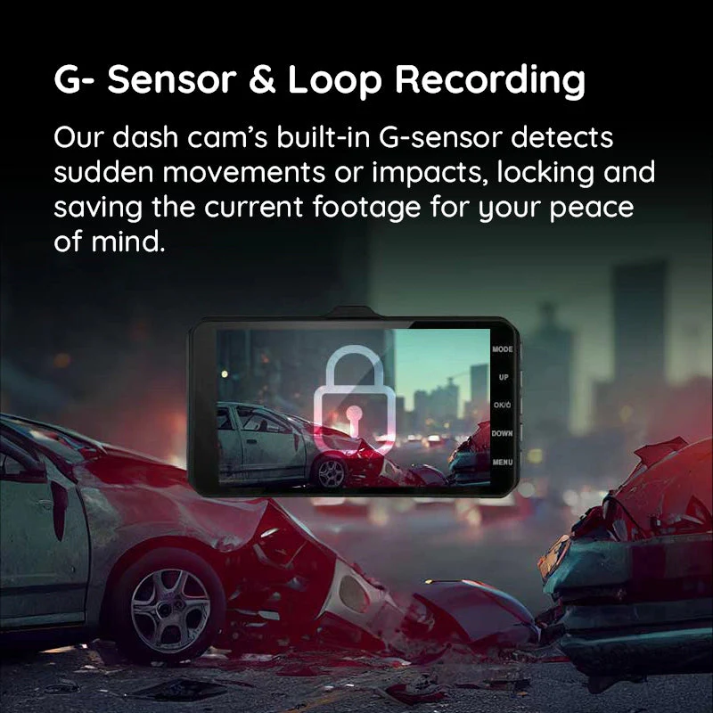 Denne dashcam-en har en 170° vidvinkellinse foran og en 120° baklinse for å dekke alle perspektiver. Med sløyfeopptak og G-sensor-funksjoner, forsikrer den at viktige øyeblikk alltid blir fanget og lagret trygt – selv under en ulykke eller mens du er bortreist. Den er enkel å installere og lett å bruke, perfekt for bilturer, daglige pendler, og ekstra trygghet for bilen din.
