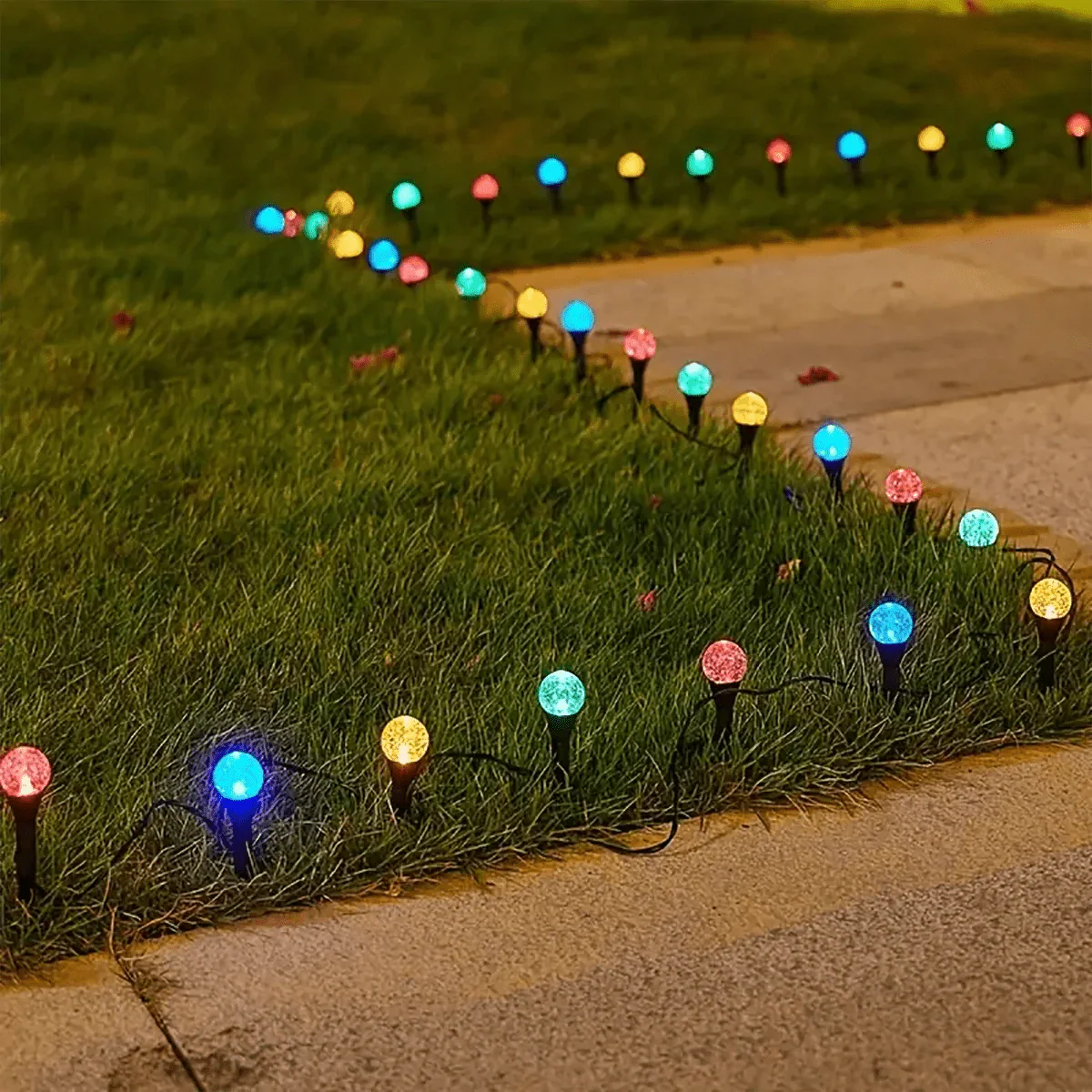 Designet for å se ut som glødende sukkertøy, har hvert mini lys en delikat 0,8-tommers bobleball som funkler som stjerner. Bygget for å tåle vær og vind, er disse lysene helt værbestandige og perfekte for utendørs bruk året rundt. Drevet utelukkende av solen, lader disse solveibelysningene automatisk opp i løpet av dagen og lyser i 8–12 timer om natten—ingen ledninger, ingen bryderi, bare miljøvennlig lysstyrke. Med 8 unike lysinnstillinger kan du endre atmosfæren når som helst.