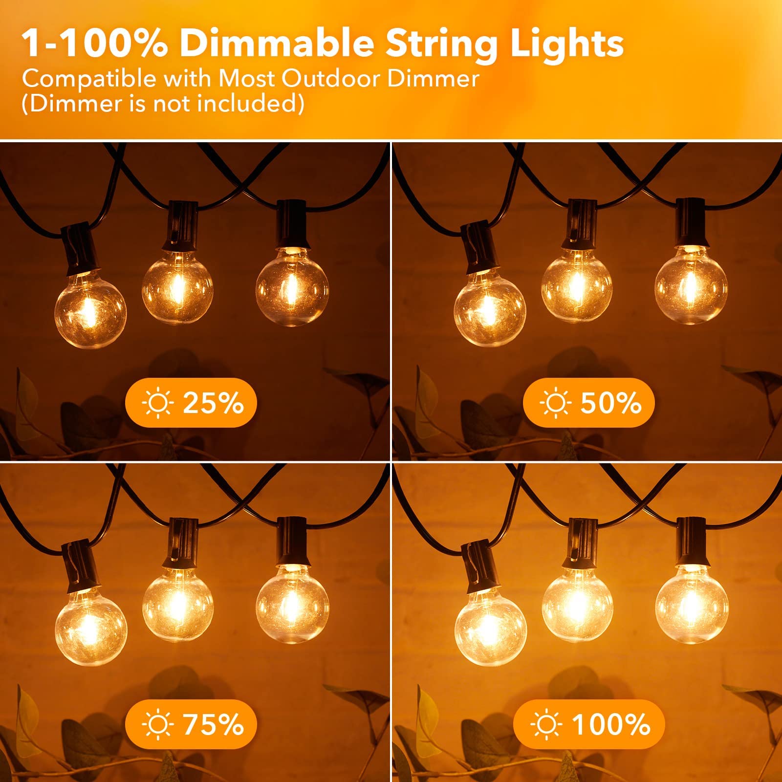 Norvo | Brightown 25Ft Utendørs Lyskæder, 27 G40 Led, Bruddsikker, Vanntett, Svart Ledning