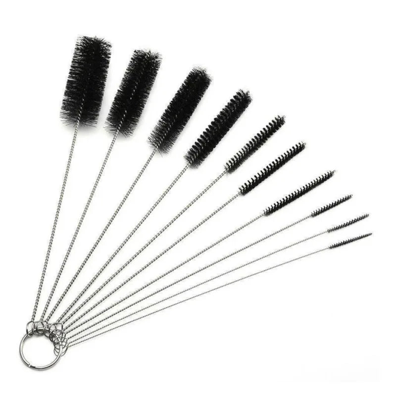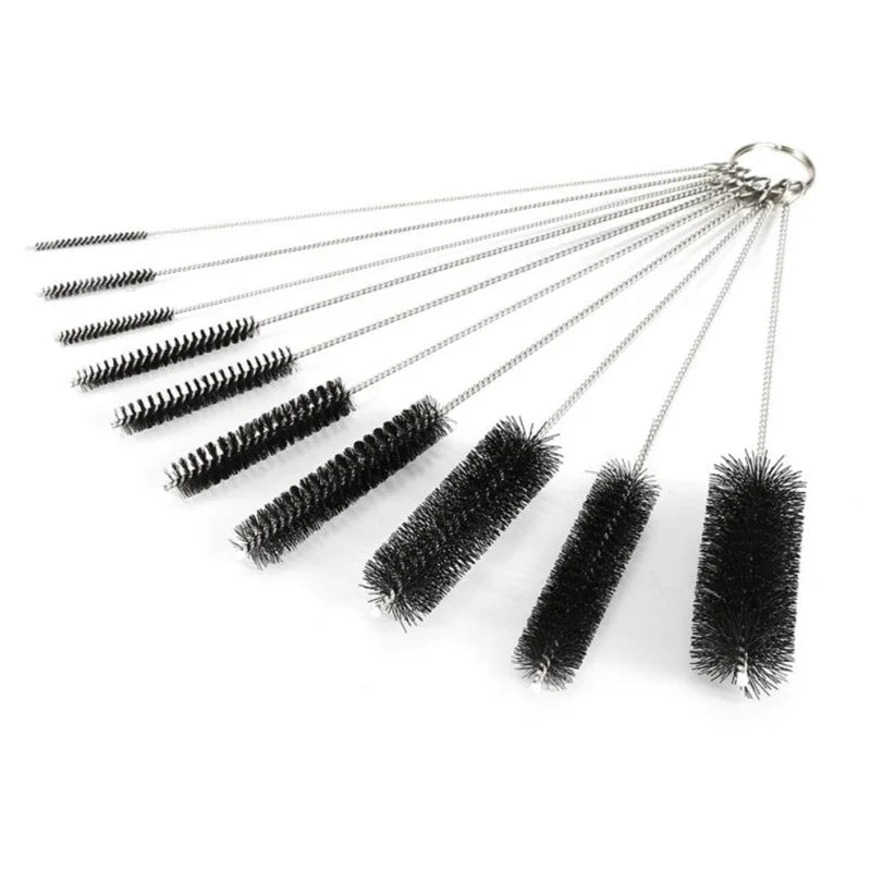 Norvo | Brushilo Rengjøringsbørstesett 10-deler | Rustfritt Stål med Nylonbust | For Sukkerør, Flasker, Rør og Laboratorietilbehør