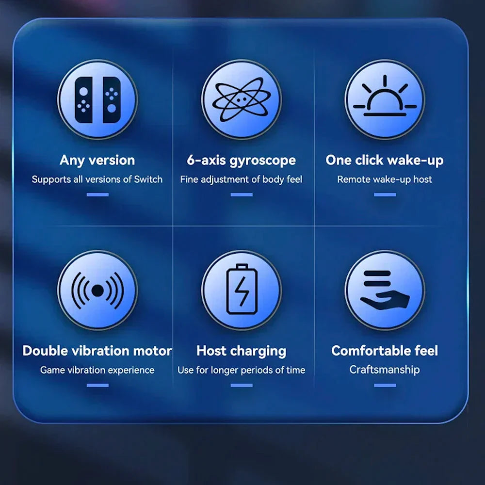 Denne kontrolleren er fullt kompatibel med alle modeller av Nintendo Switch, inkludert Switch OLED og Switch Lite. Takket være den trådløse Bluetooth-teknologien får du en rask og stabil tilkobling, som gir deg frihet til å bevege deg fritt uten ledninger i veien.
