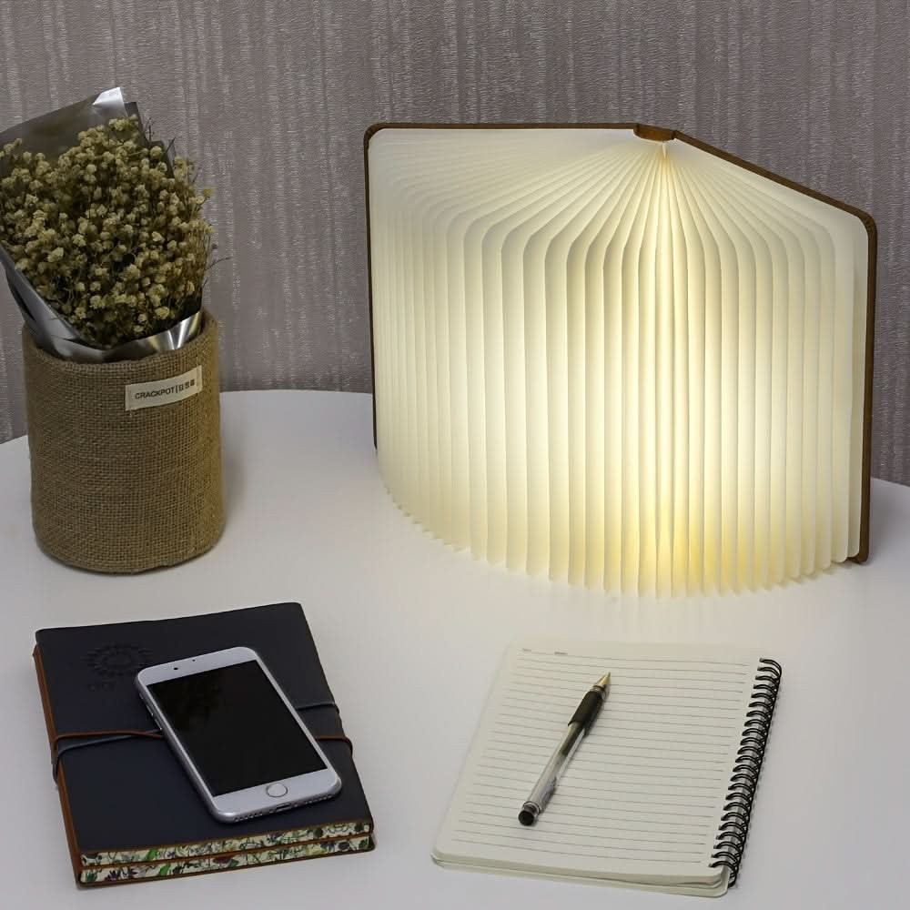 Denne spesielle lampen kan åpnes lik en bok og gir et mykt, justerbart lys med tre forskjellige fargetemperaturer – varmt, kaldt og naturlig hvitt – ideelt for enhver anledning eller atmosfære. Den magnetiske utformingen gjør det mulig å forme den på ulike måter eller feste den til metallflater for kreative belysningsmuligheter. Med USB-lading og miljøvennlig materialvalg er den den perfekte balansen mellom bærekraft og stil, ideell for lesekroker, stemningsbelysning eller som et unikt dekorativt element.