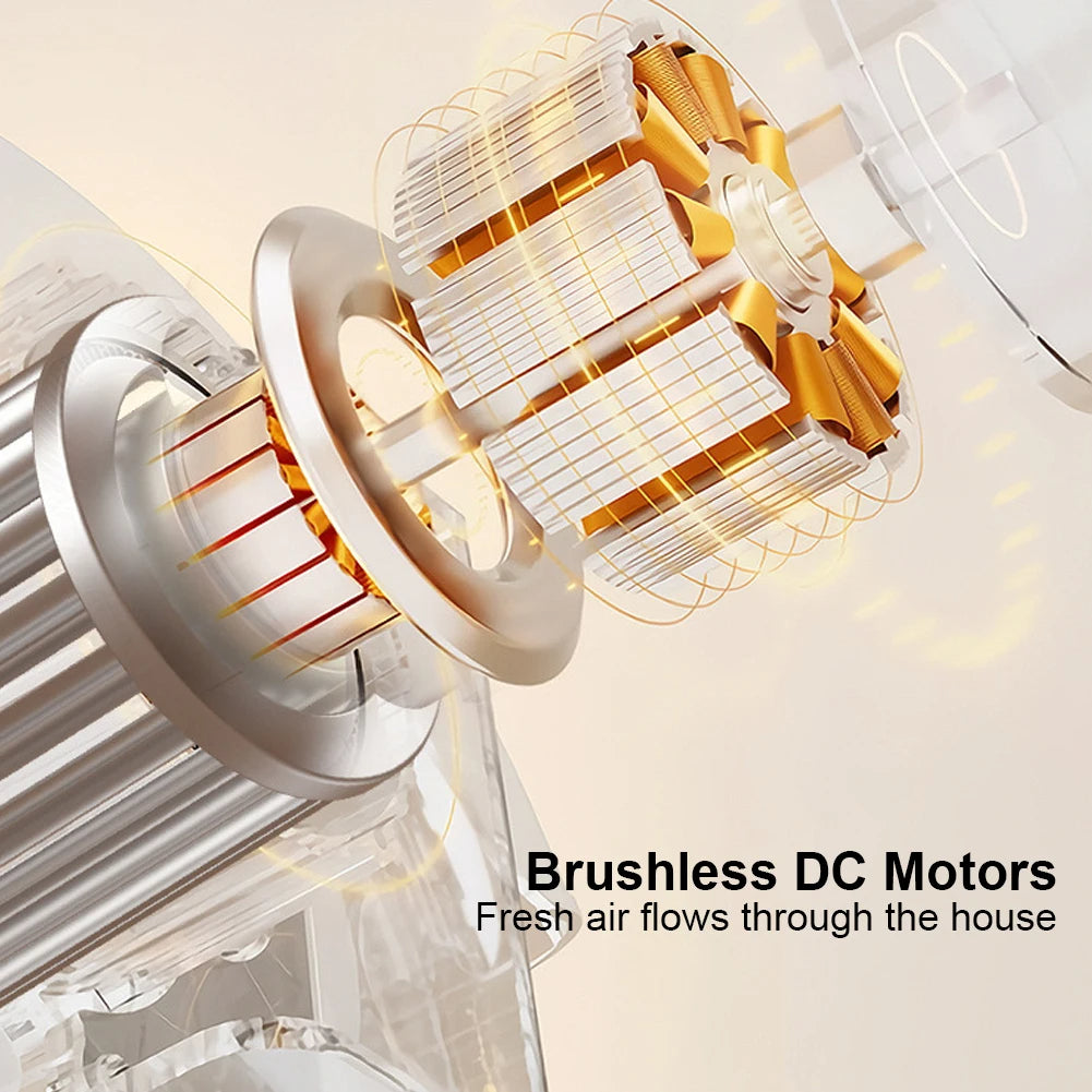- Blad-løs design: Sikker, stille og elegant med simulering av naturlig bris