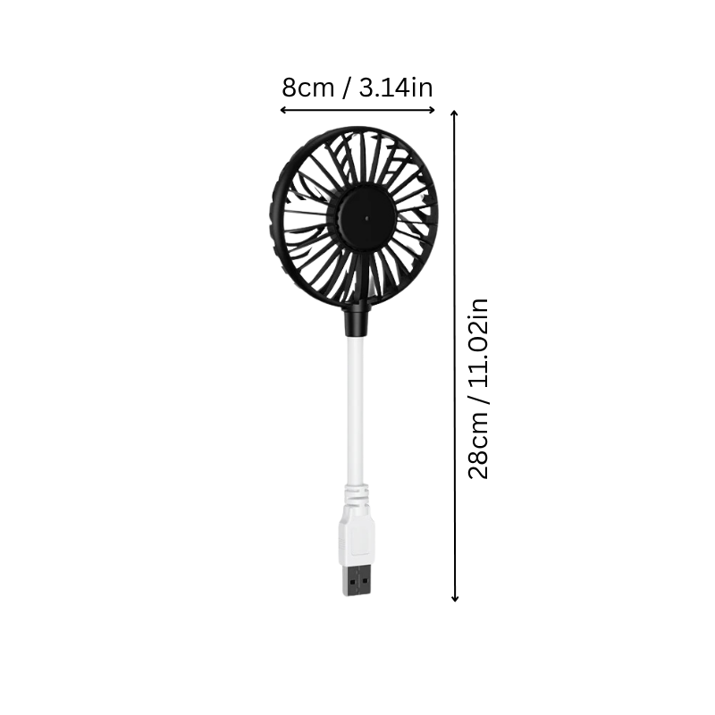 Den er liten nok til å passe i vesken din, men kraftig nok til å forfriske hele skrivebordet ditt. Bare plugg den inn i en bærbar datamaskin, strømbank eller adapter og føl brisen. Ingen venting, ingen støy—bare umiddelbar komfort.
