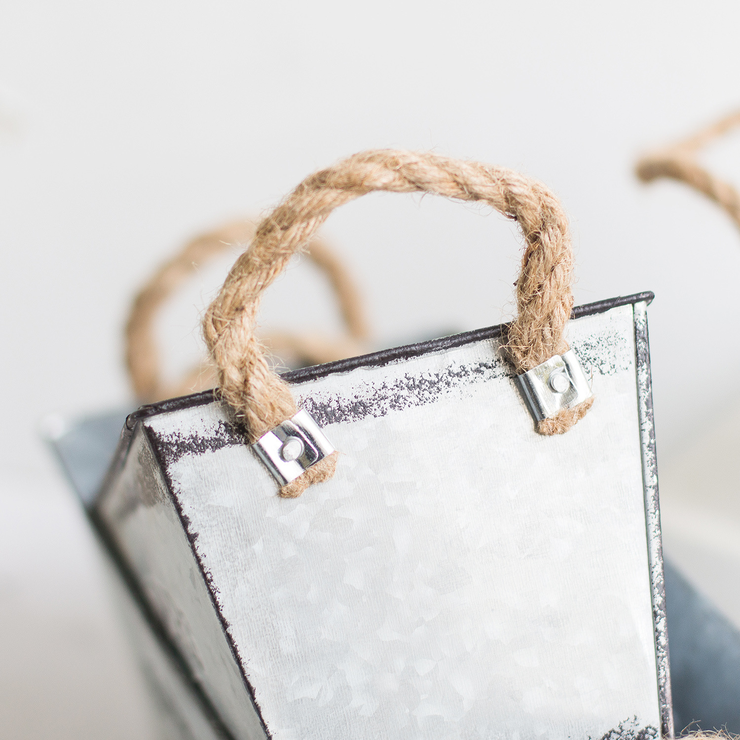 Norvo | Dekorativ blomster- og hagebeholder laget av metall med hemp tauhåndtak