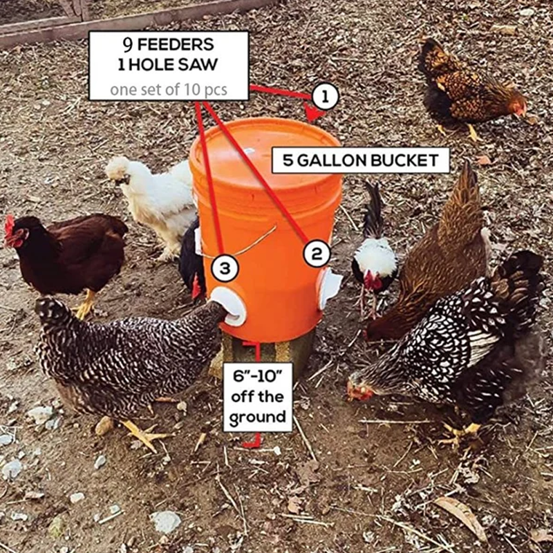 - 🐓 【EKSTREMT ENKEL Å INSTALLERE】Ingen ekstra utstyr er nødvendig. Denne fjærfemateren kommer allerede med et 3.15-tommers (8cm) hullsag, og du kan installere en tre-port mater på bare noen minutter.
