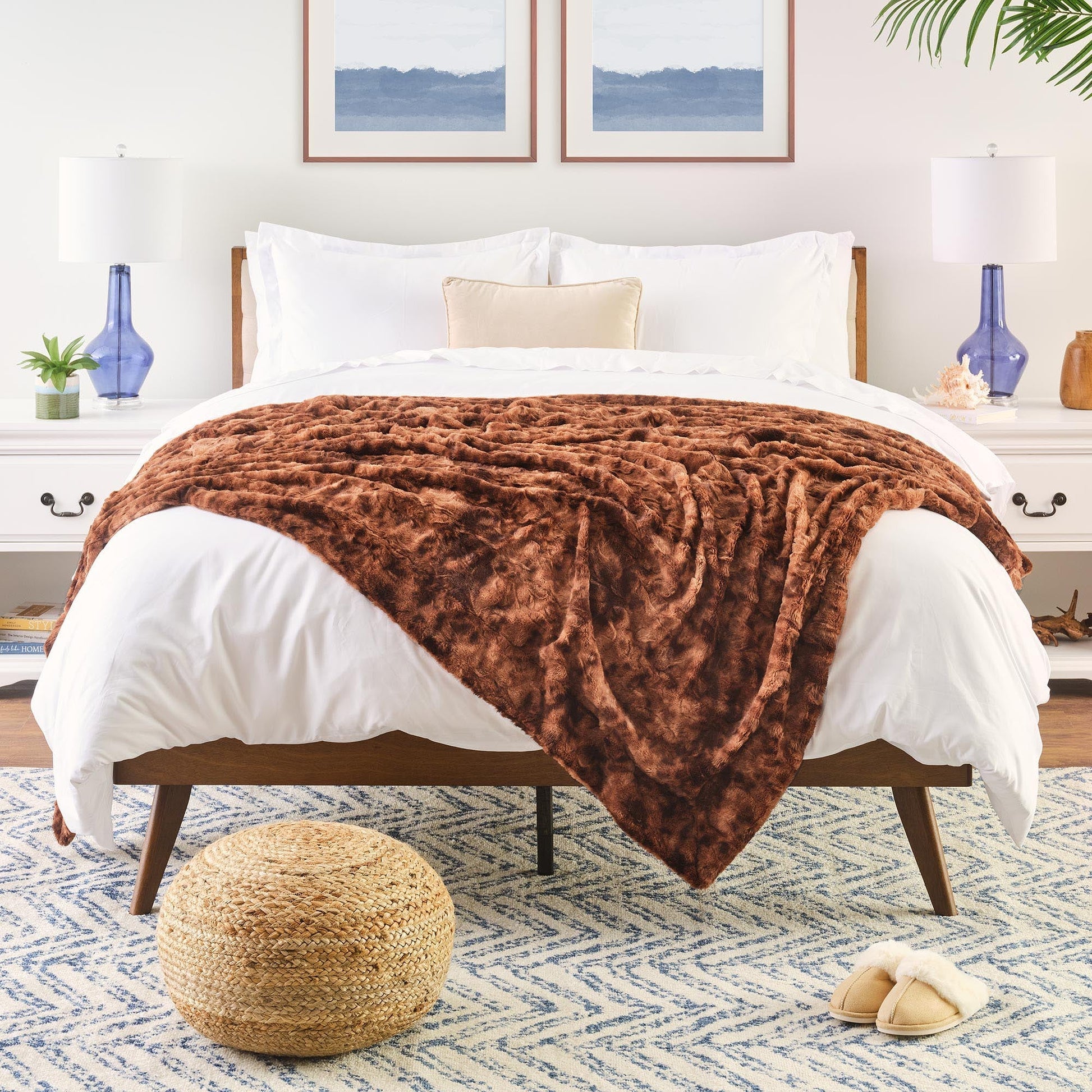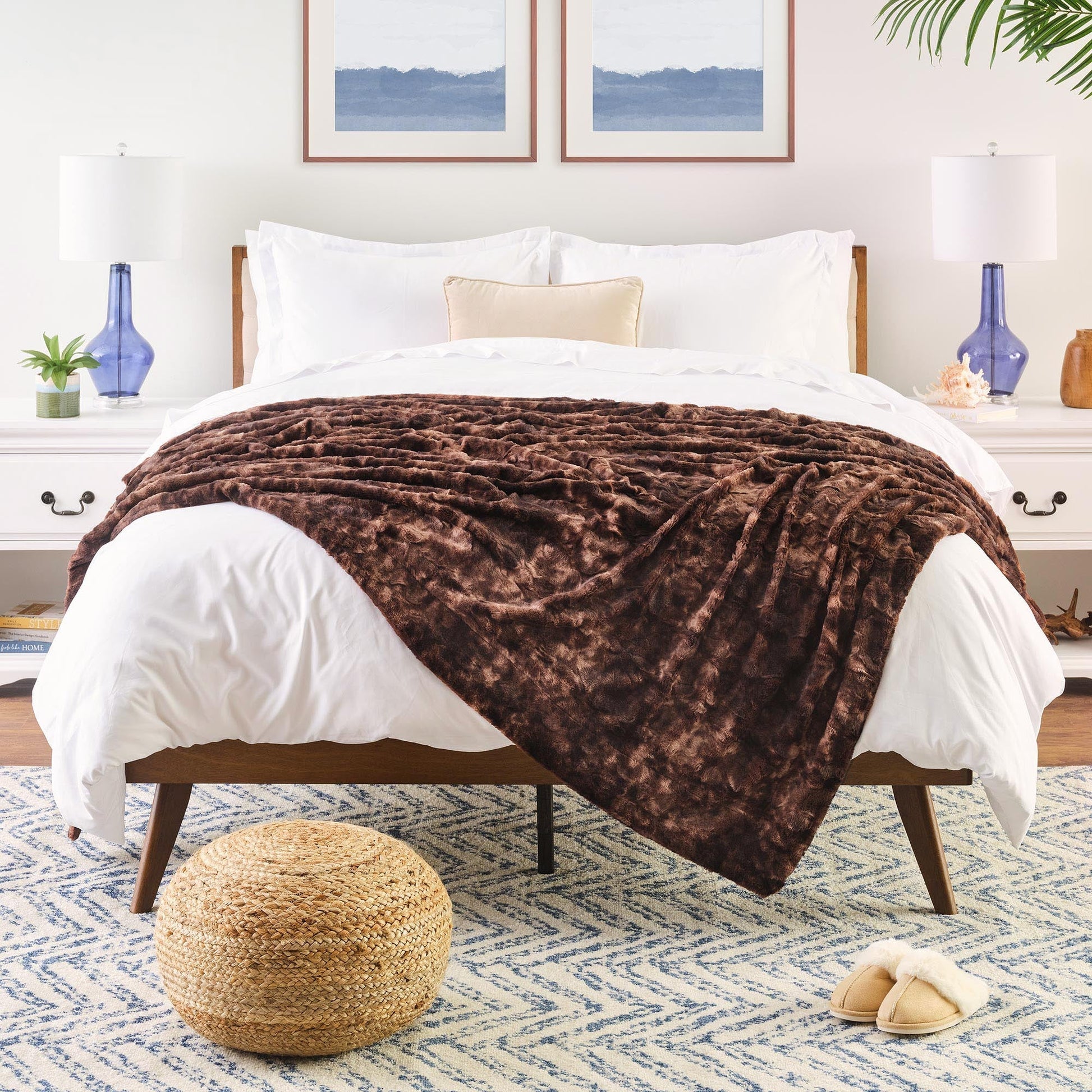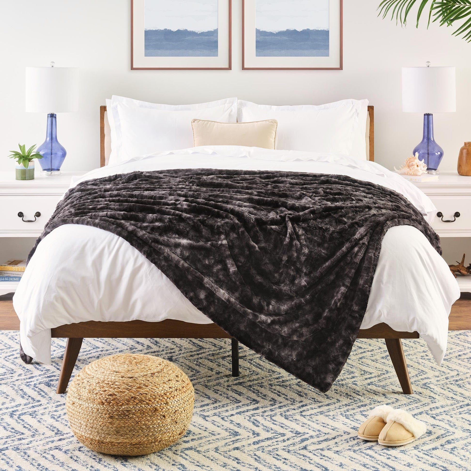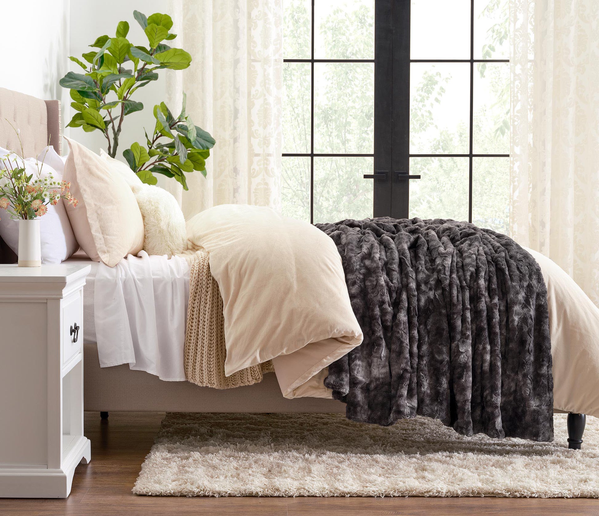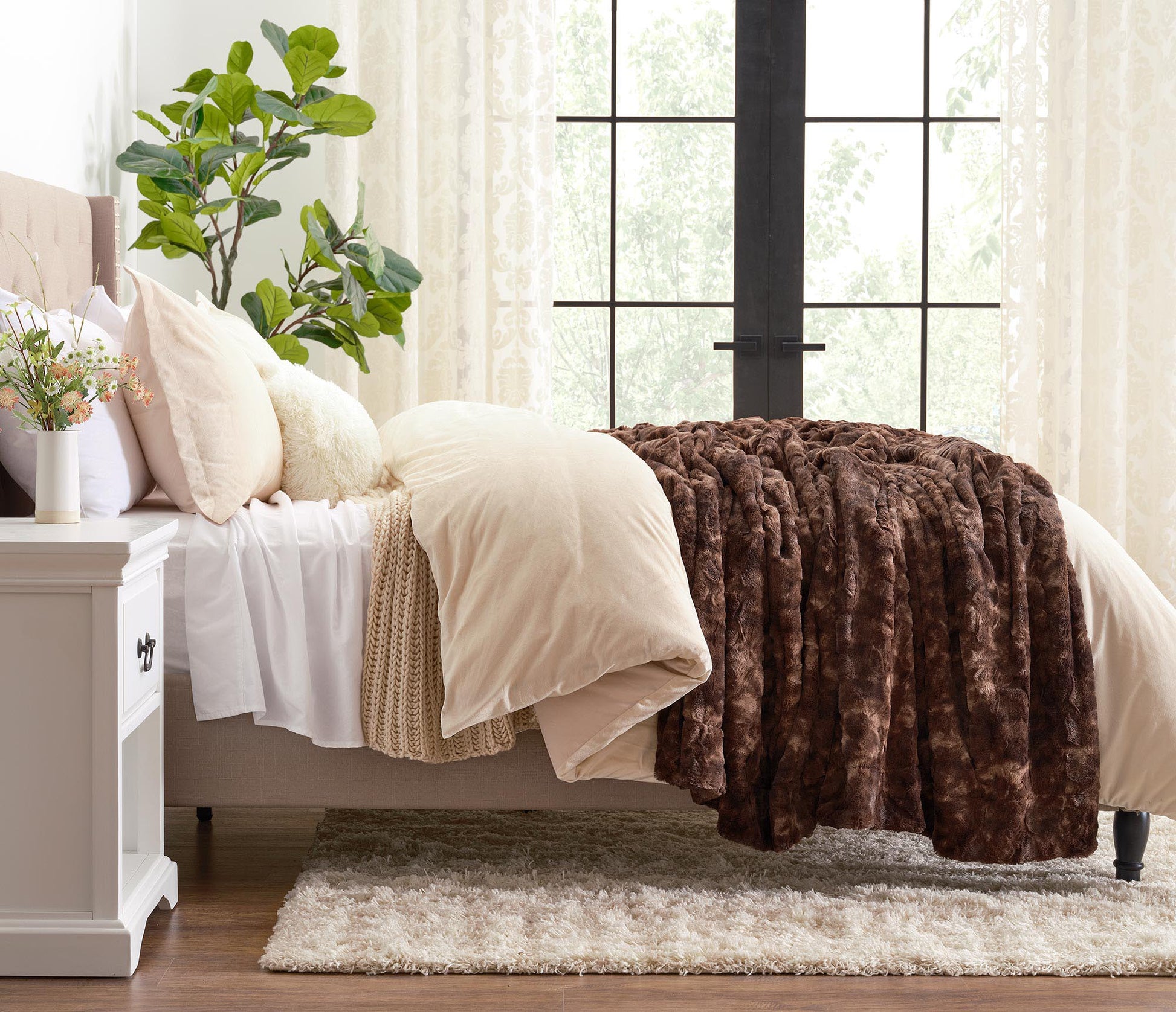 Dette kasteteppet er laget av eksepsjonelt myk, høykvalitets mikrofiber imitasjonspels. Det innbydende, teksturerte imitasjonsfleece-stoffet hever ikke bare innredningen i stuen eller soverommet ditt, men gir også en koselig følelse.