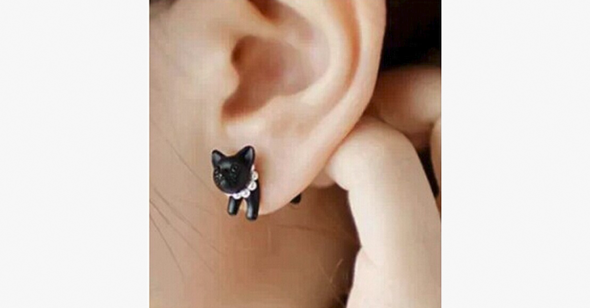 Øredobbene skildrer en sjarmerende svart katt med et vakkert halsbånd prydet med perler. Den ene siden viser kattens ansikt, mens den andre presenterer hele kroppen. Kan det bli mer livaktig? Disse øredobbene er garantert et trendy og iøynefallende tillegg til smykkesamlingen din. Hvem ville ikke ønsket å ha en katt som hviler ved øreflippen sin?