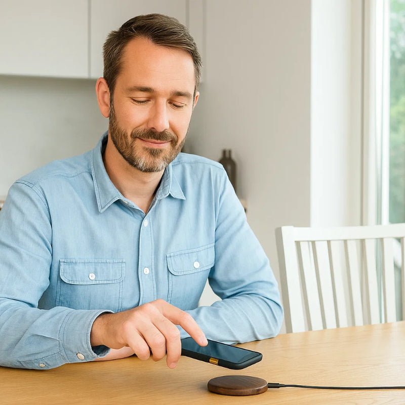 EARTHWATT forener banebrytende ladeteknologi med en bærekraftig estetikk. Laget med ekte bambus og utstyrt for Qi hurtiglading, tilfører denne laderen stil, eleganse og en touch av natur til enten skrivebordet eller nattbordet ditt. Den passer perfekt for minimalister, teknologi entusiaster, og alle som setter pris på en grønn livsstil.