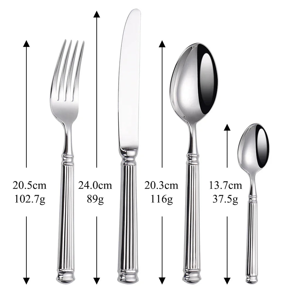 - Allsidig bruk: Dette settet inkluderer alt nødvendig bestikk og er ideelt for enhver anledning, fra daglig middag til formelle middagsselskaper.