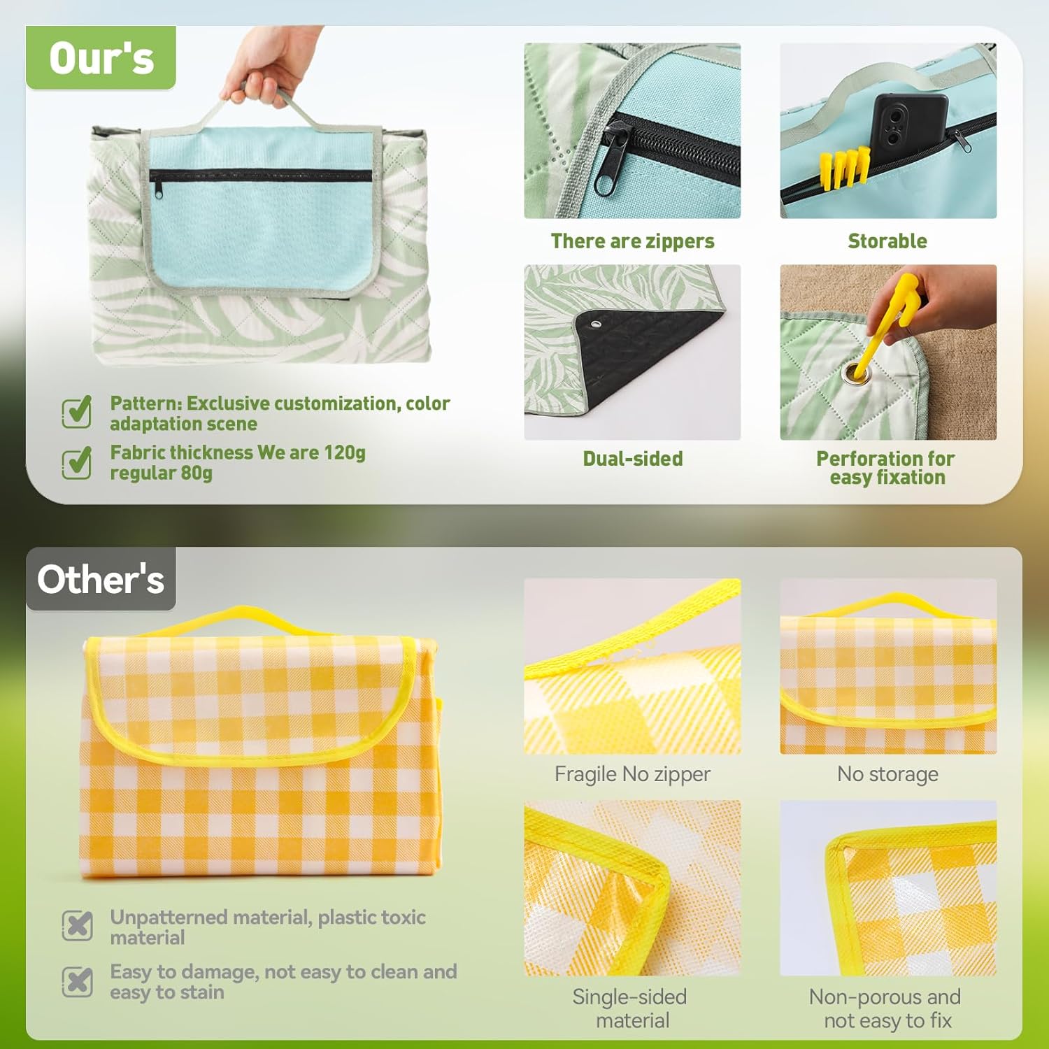 Hvorfor velge vårt Ekstra Store Vanntette Picnic-teppe 200 × 200 cm med 3 Lag – MeadowRest