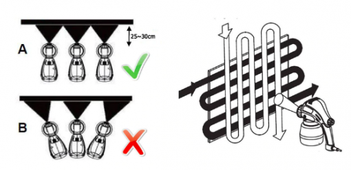 - Beveg spraypistolen jevnt, IKKE spray for lenge på ett sted.