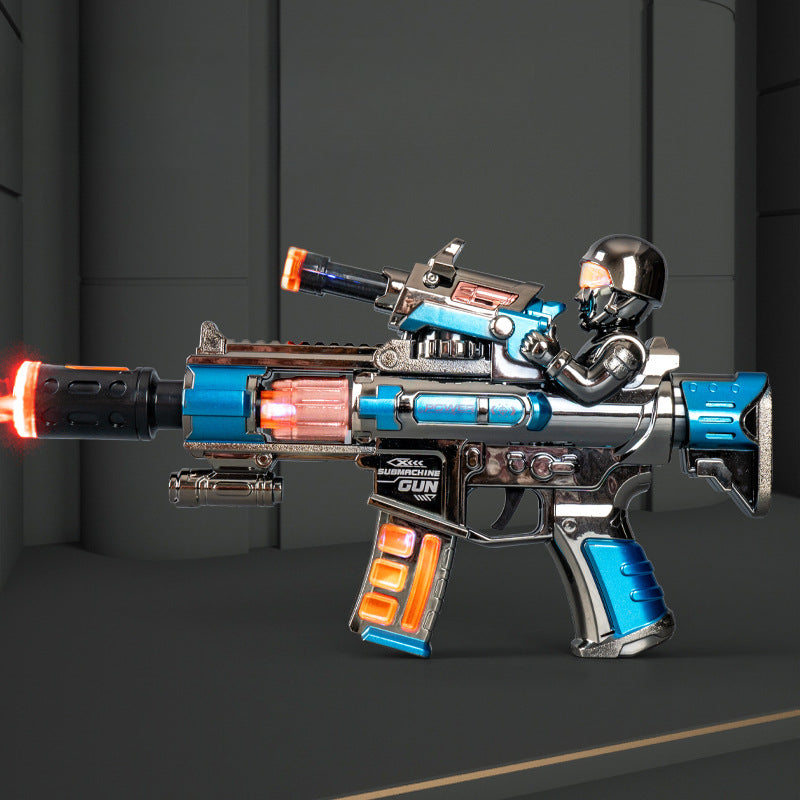 Vår elektriske leketøypistol kommer med fargerik LED-belysning og lydeffekter som gir en levende skyteopplevelse. Hvert avtrekk gir en spennende kombinasjon av blinkende lys og kraftige lyder, slik at du forblir helt oppslukt i leken.