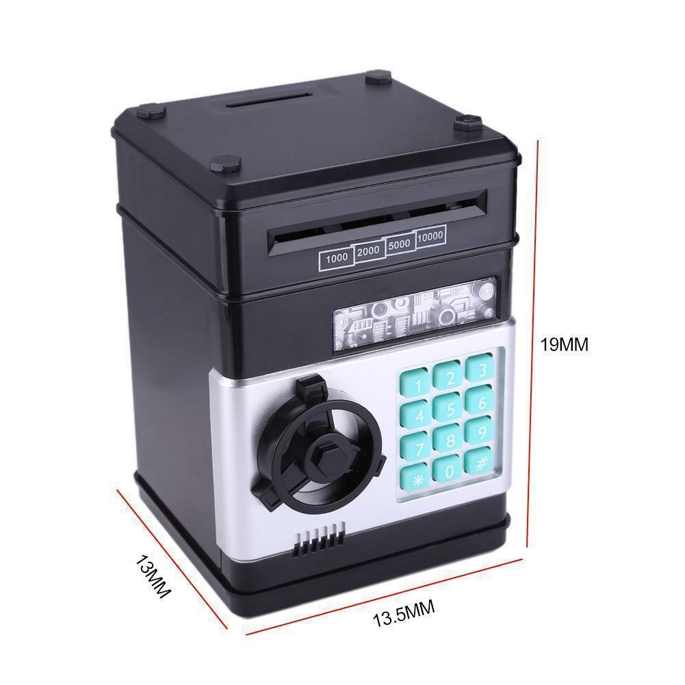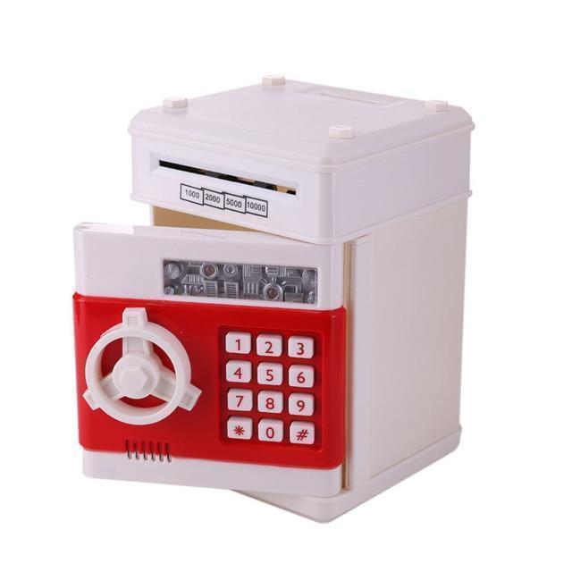 - Dette er ikke bare en vanlig leke, det er elektronisk. Sett inn pengene dine i banken og se dem bli sugd inn og deponert. Barna dine vil ønske å legge til enda mer!