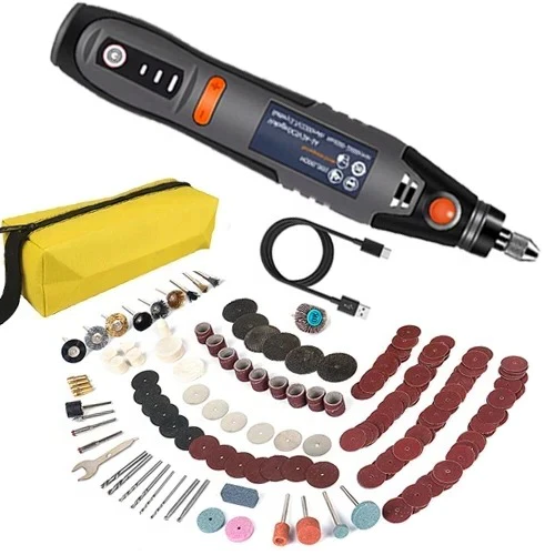 Dette allsidige verktøyet er utstyrt med tre nøyaktige hastighetsinnstillinger og drives av en kraftig 35W motor laget av ren kobber med 5V inngang. Med hastigheter fra 8,500 til 21,000 RPM regulerer den intelligente brikken rotasjonen, og innebygde sikkerhetsfunksjoner sikrer optimal ytelse.