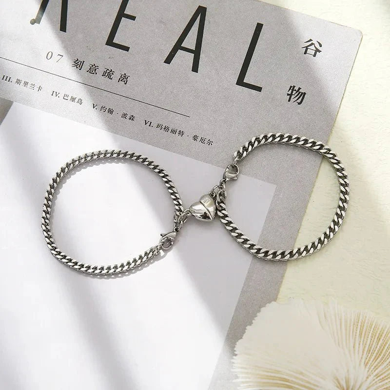Norvo | Enkel Par Cuban Magnetisk Hjerte Armbånd Sett
