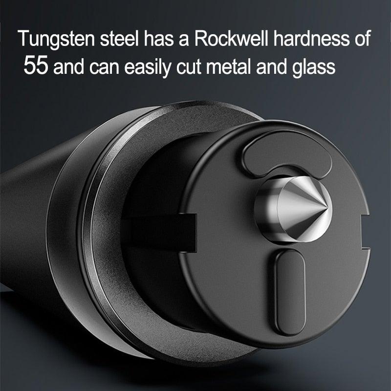 Med det mekaniske prinsippet for vindusknusing, kan verktøyet enkelt brukes til å bryte vinduer selv i vann. Den integrerte rustfrie stålkutteren lar deg raskt og effektivt klippe setebeltet i nødsituasjoner.